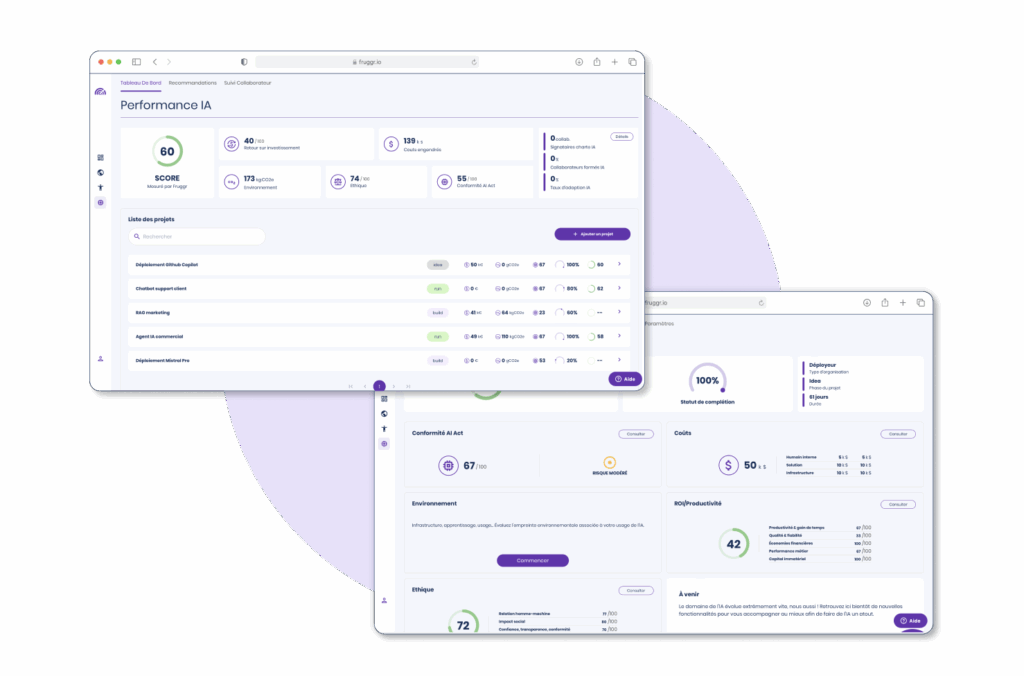Plus qu’un reporting de conformité, Fruggr aligne vos exigences réglementaires avec un ROI tangible. Gouvernez vos IA, optimisez l’ESG de votre IT et assurez l’accessibilité de vos services pour réduire vos coûts, décarboner votre activité et toucher une audience élargie.