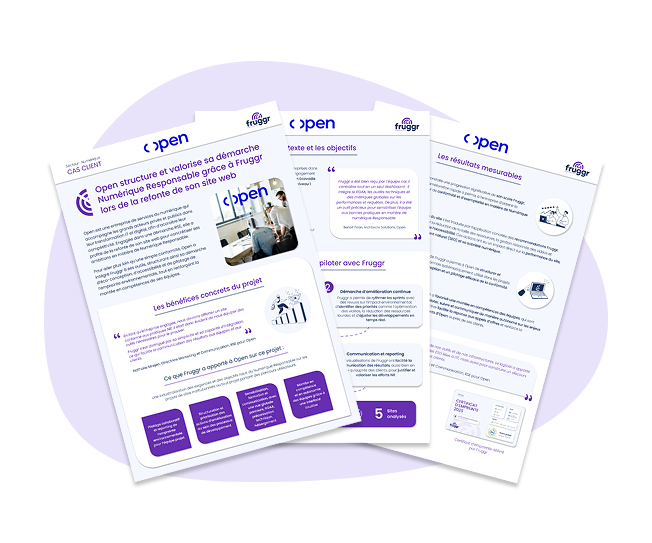 Afin d’améliorer sa démarche Numérique Responsable, notamment en matière d’éco-conception et d’accessibilité, Open a choisi de collaborer avec Fruggr.